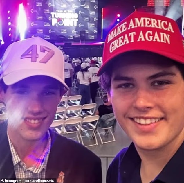 Joshua Wilson, um júnior, (foto à esquerda) fez um discurso em homenagem à vida de Kirk em 10 de setembro, enquanto usava um chapéu 47.