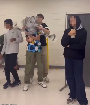 Vários adolescentes muçulmanos de uma escola secundária de elite na Virgínia foram suspensos depois de encenar uma peça teatral “semita” na qual um estudante enrolava um keffiyeh na cabeça de uma colega de classe e fingia sequestrá-la (foto).