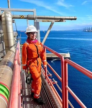 A Sra. Vilamil se tornou engenheiro há sete anos e trabalhou em plataformas em vários países, incluindo os Emirados Árabes Unidos, Namíbia, Indonésia, Espanha e Colômbia.