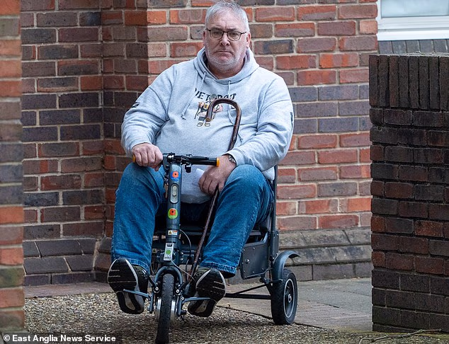Walker se representou na audiência de sentença no Tribunal de Magistrados de Norwich devido ao seu acesso para cadeira de rodas.