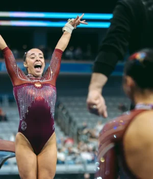 Início Desporto Faith Torrez ganhou o título de ginástica geral da NCAA, apesar de...