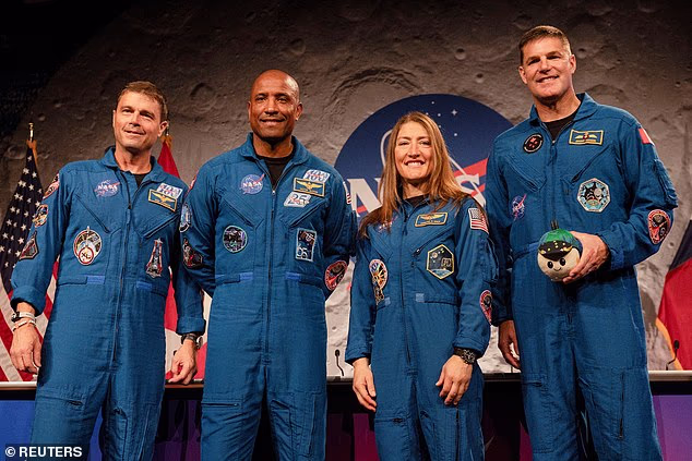 Reid Wiseman, 50, Victor Glover, 49, Christina Koch, 47, e Jeremy Hansen, 50, decolaram na primeira missão tripulada à Lua desde 1972.
