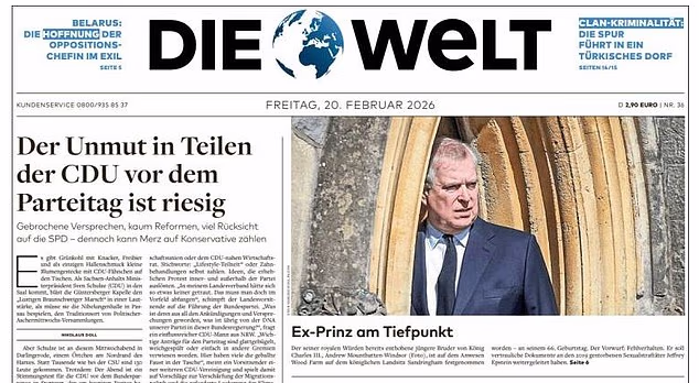Die Welt, outro jornal alemão, declarou o ex-duque de York no “fundo do poço” após alegações de má conduta em cargos públicos.