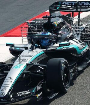 Mercedes e George Russell estavam entre os que executaram ancinhos aerodinâmicos, usados para analisar o fluxo de ar em carros (Getty Images).