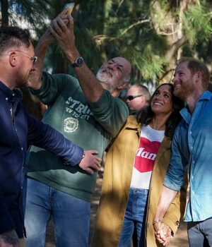 Desde que pousaram na terça-feira, Meghan e Harry posaram para inúmeras selfies para os australianos que esperavam do lado de fora da parada oficial da turnê.