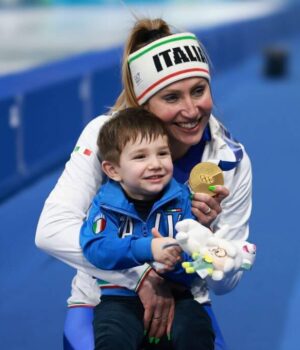 A patinadora de velocidade italiana conquistou a primeira medalha de ouro dos Jogos do país anfitrião nos emocionantes 3.000 m femininos no sábado. E no aniversário dele.