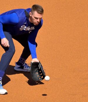 A primeira base de 35 anos começou a bater a quarta do jogo de abertura da série contra a noite de Chicago Que em sua cabeça de boi. O mais antigo dos três meninos de Freeman é por causa do primeiro arremesso de Charlie Fremann, o mais antigo do primeiro arremesso. Há um armário ao lado de seu pai no Dodzers Clubhouse.