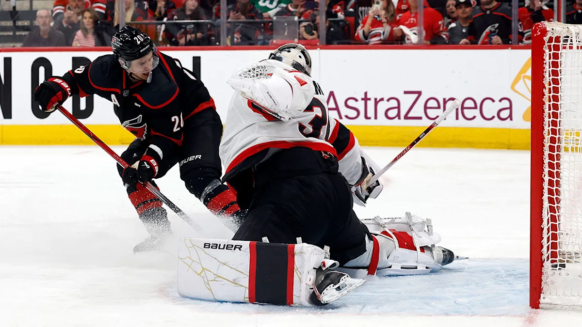 Os Canes marcaram primeiro com um gol de power play de Logan Stankoven no primeiro período, depois dobraram a vantagem no segundo período com um gol de Sebastian Ahor após uma assistência de Jordan Staal.