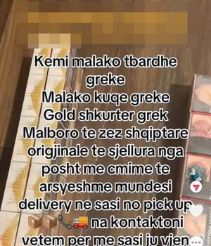 Uma conta no TikTok e no Facebook opera sob um nome que se traduz aproximadamente como “maços de cigarros albaneses” e oferece cigarros Marlboro da Grécia e da Albânia para entrega ao domicílio.