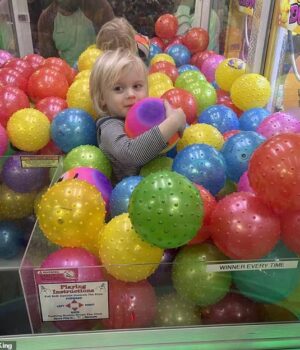 Cooper King, de dois anos, rastejou para dentro de uma máquina de garras e se recusou a sair