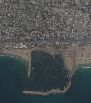 Uma imagem de satélite mostra o porto de Gaza no dia seguinte ao início da guerra, em 8 de outubro de 2023