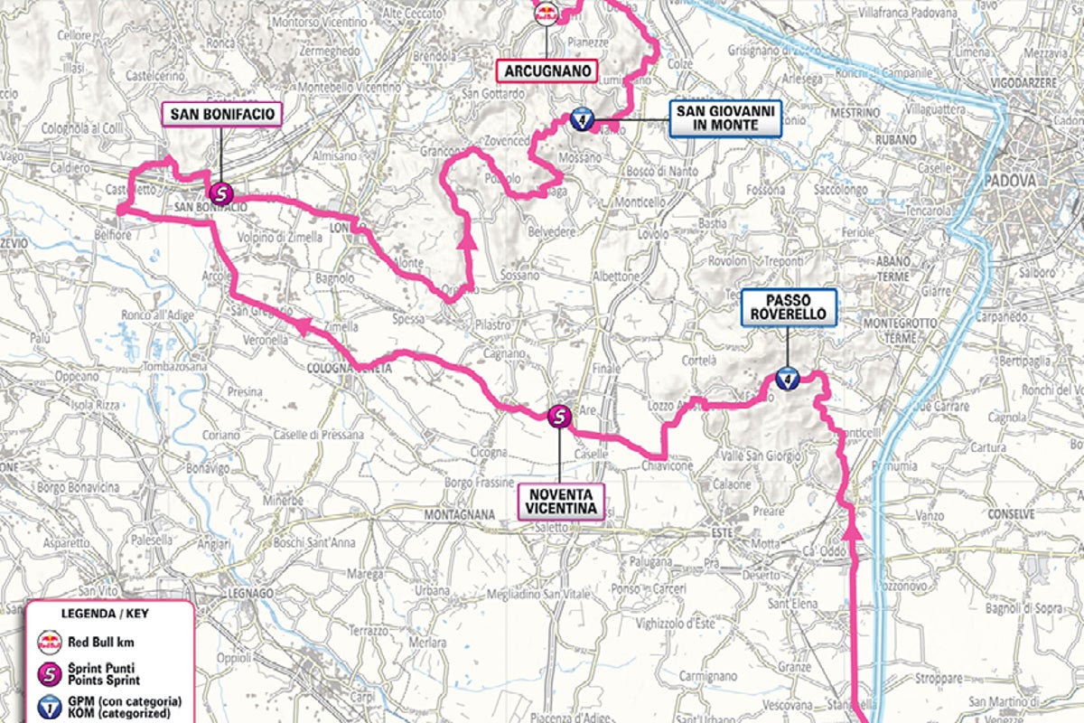 O palco correu 5 km de Veneto a Rovigo de Rowigo a quatro divisões e outra rampa íngreme no quilômetro Red Bull, a apenas 5 km da linha.