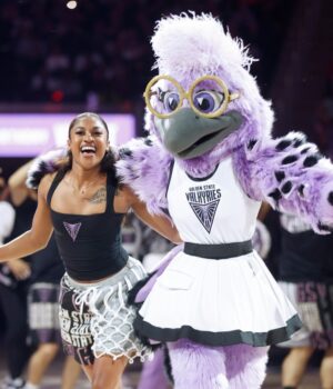 Na segunda -feira à noite, milhares de fãs olham através dos binóculos, Golden State Valkiri revelou seu novo mascote: Violet é um corvo roxo dividido, que pegou seu caminho na corte e no coração dos fiéis de Valcieridge.
