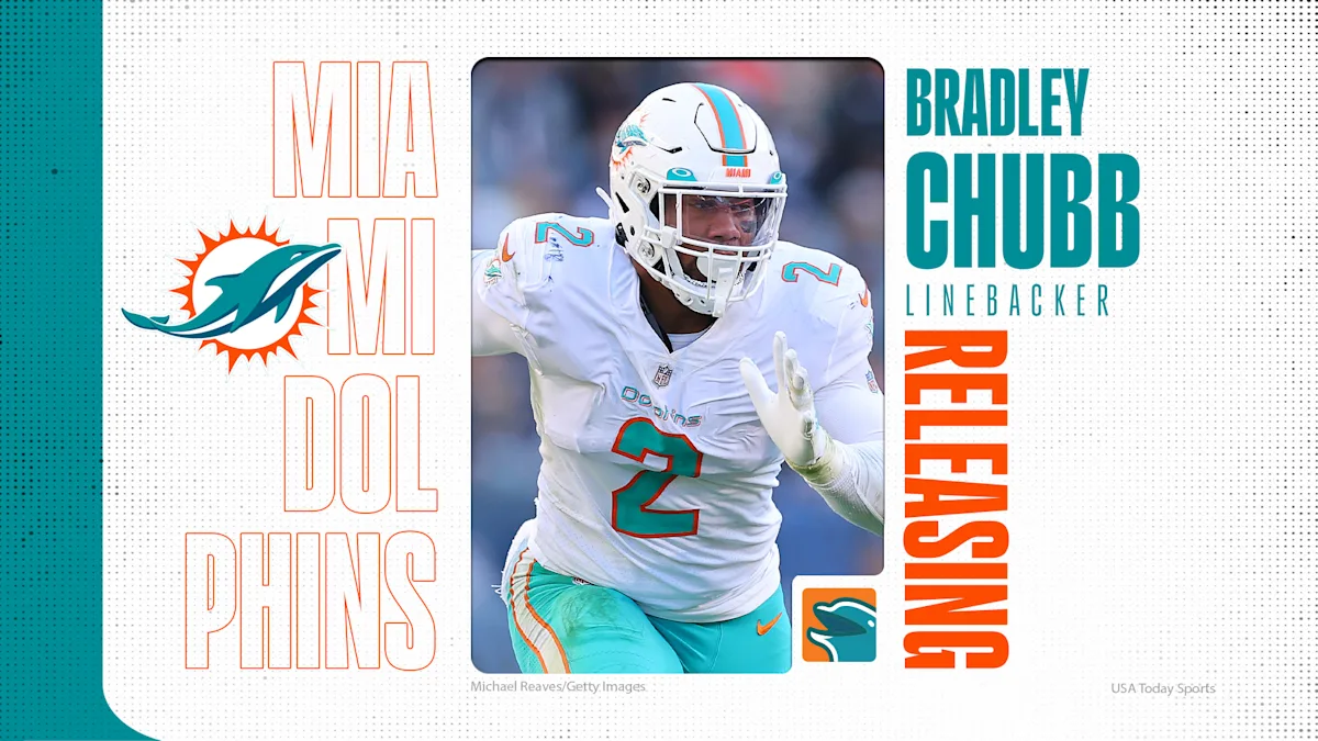 Os Miami Dolphins estão liberando o pass rusher Bradley Chubb para economizar espaço no teto salarial. De acordo com Tom Pelissero, da NFL Network.