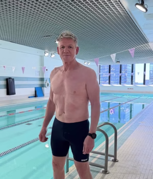 Gordon Ramsay, 59 anos, seguiu os passos de seu genro nadador Adam Peaty quando foi para a piscina enquanto treinava para um Ironman.