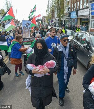 “A polícia não apenas permitiu em março, apesar de ter sido organizada, exceto o aviso legal necessário, mas também tomou medidas mínimas, pois a marcha foi” parou de matar crianças ” – um eco legal da difamação medieval do sangue – e apoiou publicamente a organização terrorista proibida no Reino Unido.