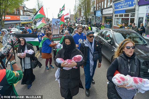 Grupos judeus condenam a marcha profissional ‘nojenta’ da Palestina durante a Páscoa que as famílias passam da sinagoga para o país enquanto a multidão ‘pare de matar crianças’