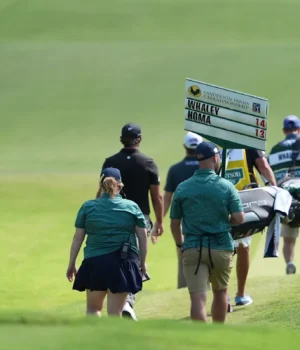 O jacaré dá a imagem sagrada a cerca de 6 metros de distância na água quando o tiro é tocado do banco no campeonato de Sanderson Farms no domingo a 5.