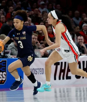 Notre Dame se recuperou do fumble inicial do Ohio State para empatar o jogo em 24. A partir daí, Hidalgo acompanhou o Fighting Irish em ambas as extremidades da quadra em uma vitória surpreendente por 83-63.