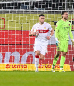 Mas o próprio Stuttgart recebeu um pênalti quando Conteh derrubou Bilal El Khans na área e Mittelstadt cabeceou para a rede por seu erro anterior, aos 44 minutos.