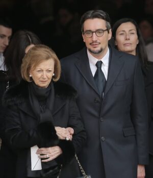 Foto: Maria Franca Ferrera e seu filho Giovanni Ferrero durante o funeral de Michele Ferrero em 18 de fevereiro de 2015