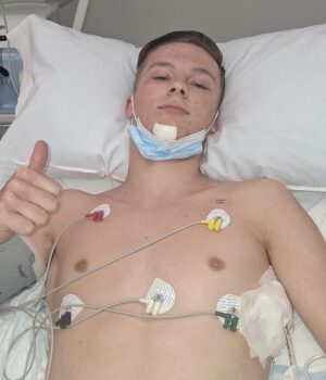 Falando exclusivamente ao Daily Mail de sua cama de hospital, com sua mãe Caroline ao seu lado, Theo, de Royton, perto de Oldham, disse: “Eu realmente pensei que o jogo tinha acabado. Achei que ia morrer por causa da quantidade de sangue no chão.’