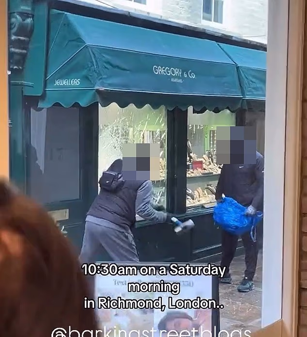 Dois homens (na foto) foram vistos quebrando a janela da Gregory & Co Jewelers com um grande martelo em 31 de janeiro, em um vídeo que desde então se tornou viral online.