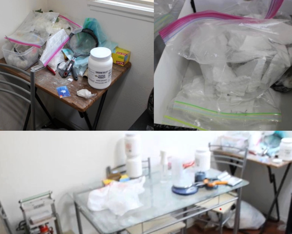 A investigação levou a uma batida no apartamento compartilhado de Castro-Artiga no quarteirão 300 da Avenida Euclid, em Oakland. Lá, as autoridades encontraram quatro quilos de fentanil, US$ 42 mil, uma prensa hidráulica de comprimidos, equipamento para moldagem de comprimidos e fabricação de drogas, uma arma e 12 balas, de acordo com os autos do tribunal.