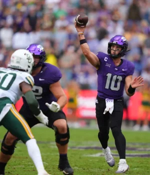 FORT WORTH, Texas (AP) – Josh Hoover lançou três passes para touchdown, Kaverian Burns correu para 106 jardas e duas pontuações e o TCU se manteve firme para vencer o rival local dos 12 grandes, Baylor, por 42-36 no sábado, depois de igualar os dois melhores passadores da FBS e mais de quatro horas de atraso.