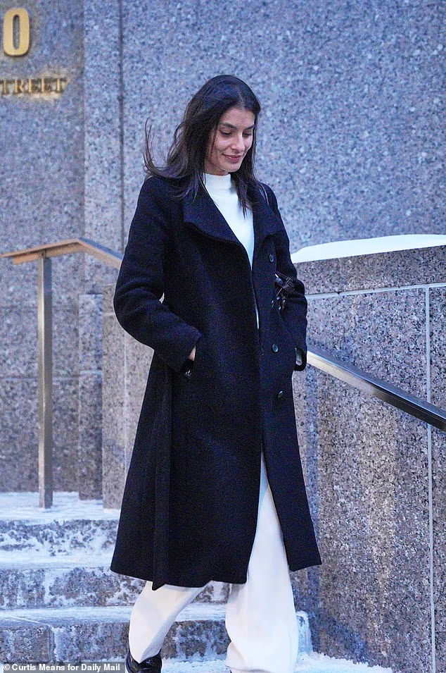 A esposa modelo de Alan Alexander, Shani Ziegron, foi vista sorrindo ao deixar o tribunal na quarta-feira