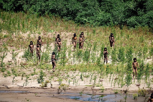 Surgiram imagens e imagens incríveis e nunca antes vistas da maior tribo isolada do mundo, mostrando caçadores amazônicos empunhando lanças interagindo com exploradores ocidentais.