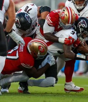 4. Enquanto Nick Bosa e Michael Williams se recuperam de rupturas do ACL, os 49ers prosseguem com estas pontas defensivas: Huff, White, Sam Okwueinonu, Robert Beal Jr., Clayton Ferrell e William Bradley-King, os dois últimos dos quais estão no time de treino.