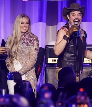 Charlie Kirk e sua esposa Erica assistiram a vila no palco, assistindo a bola de véspera de abertura na bola de véspera de abertura em Washington, DC, em 5 de janeiro, durante o Turning Point USA.