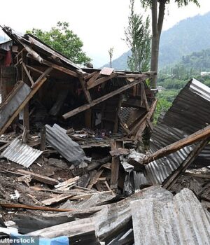 Após um intenso bombardeamento intercontinente e disparo entre a Índia e o Paquistão, entre a Índia e o Paquistão, Jammu e Caxemira, Caxemira Indiana, 9 de maio de 2025,
