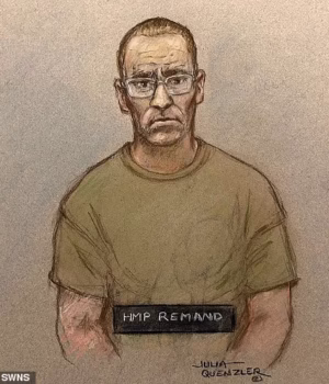 Um esboço artístico de Paul Doyle após comparecer ao tribunal acusado de dirigir contra uma multidão na Parada da Vitória de Liverpool em 26 de maio