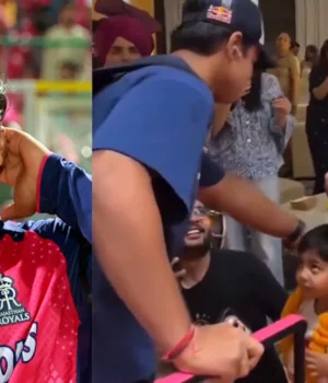 Em um vídeo compartilhado pelo Rajasthan Royals nas redes sociais, Suryavanshi, que recentemente marcou um século de 35 bolas contra o Sunrisers Hyderabad, foi recebido com guirlandas no hotel do time. No entanto, ele o apresentou a uma criança que, junto com outros torcedores, esperava para dar uma olhada no time comandado por Ryan Parag.