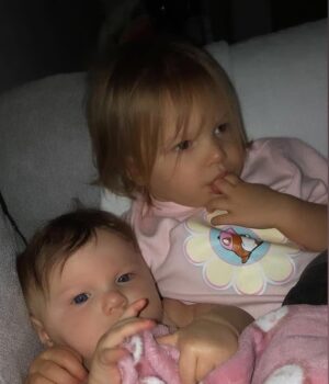 As irmãs são vistas comemorando o segundo aniversário de Kinsley em 2024