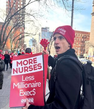 Para assinalar o seu regresso à campanha, Jack Schlossberg, 32 anos, participou num comício com a Associação de Enfermeiros do Estado de Nova Iorque, quando 15 mil deles entraram em greve em 12 de janeiro.