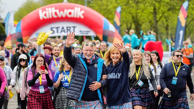 Sir Tom Hunter e Jackie Bird lideraram milhares de escoceses no Kiltwalk anual ontem.