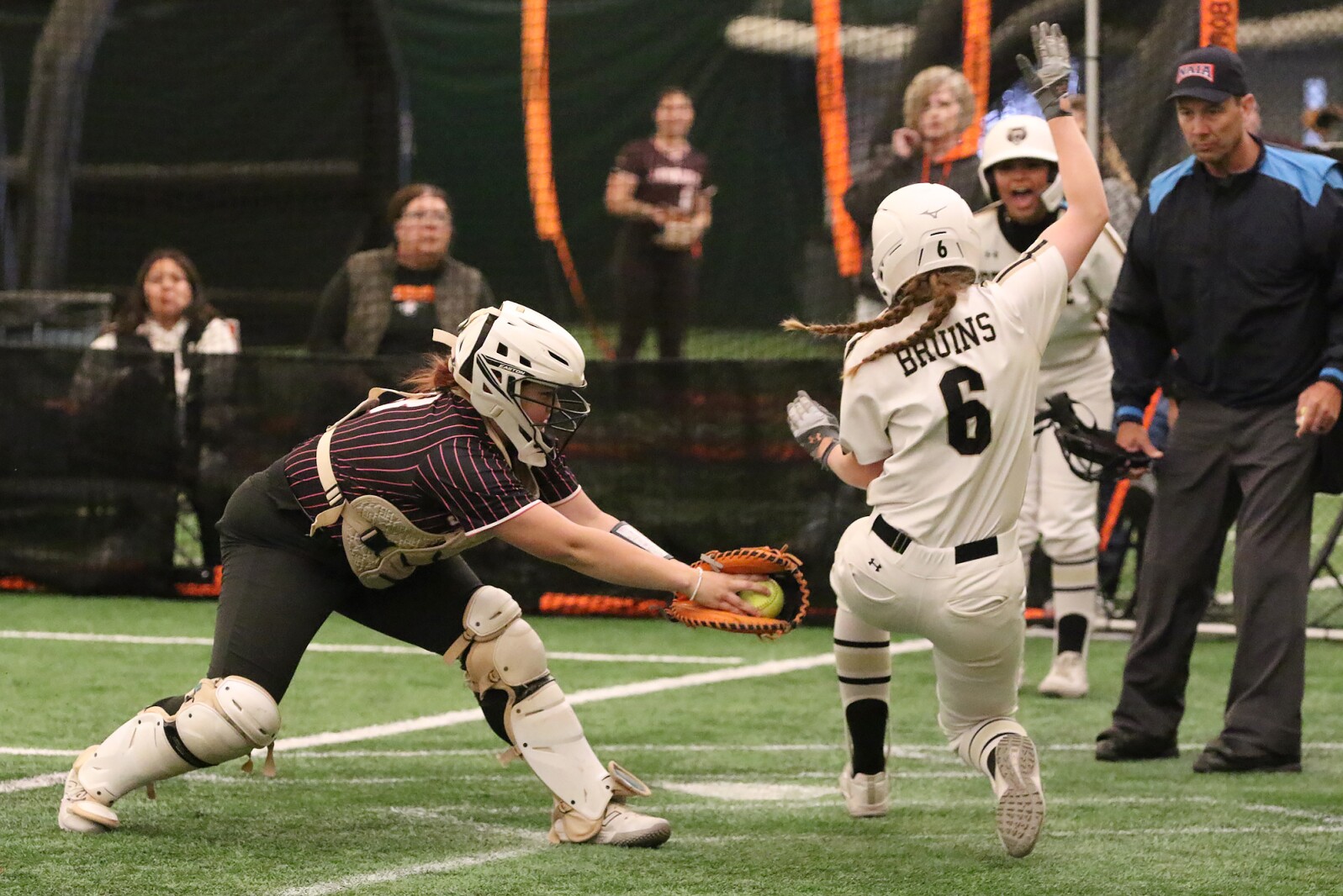 Os Bruins sacudiram o nariz nas sextas entradas, quando Katie Cunningham bateu em um single Blup nas gramíneas, o que permitiu a Catlin Fisher marcar Fisher do segundo para todo o caminho e assumir a liderança em uma vantagem de 3-1. Bruins adiciona uma única unidade do Alexa ao sétimo ao sétimo, que é um dia 2-0.