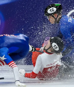 MILÃO – A patinadora polonesa Kamila Celier sofreu uma lesão grave durante as sextas-feiras à noite nas quartas de final dos 1.500 m de patinação de velocidade em pista curta e foi levada às pressas da Arena de Patinação no Gelo Assago para um hospital próximo. As autoridades polonesas indicaram que ele estava de bom humor, até erguendo o polegar ao sair da arena.