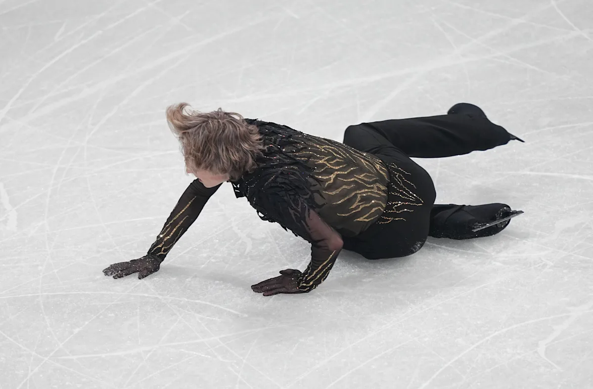 Ilya Malinin tentou a rotina mais difícil da patinação artística e isso lhe custou um lugar no pódio. (Foto de James Lang-Imagon)