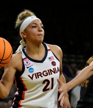 Johnson também teve 10 rebotes e cinco assistências em seu nono duplo-duplo na carreira. Caitlin Weimer somou 11 pontos saindo do banco para Virginia e Romy Levy marcou 10.