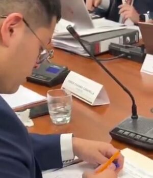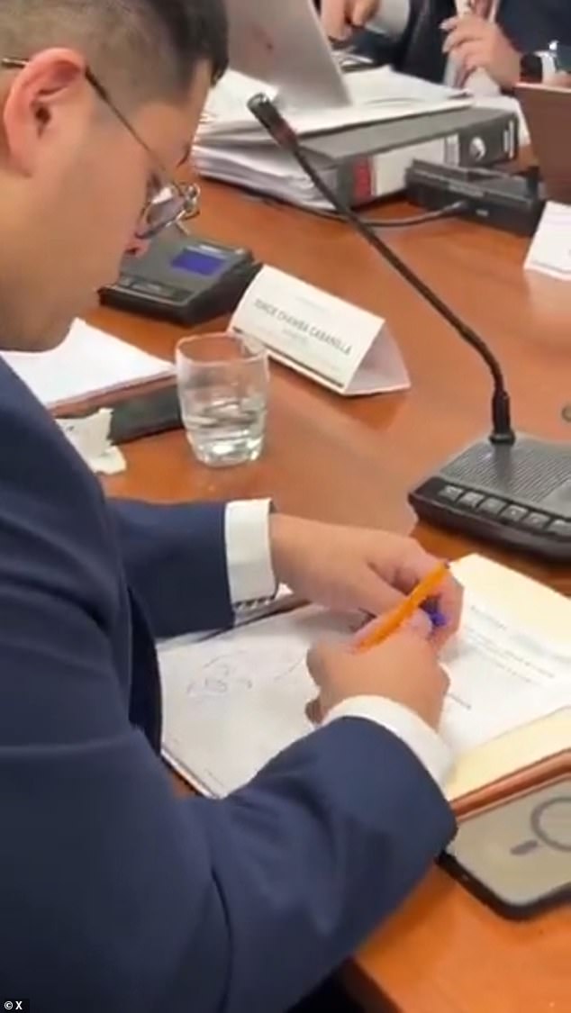 O membro mais jovem do Congresso do Equador pode enfrentar passos disciplinados depois de registrar o desenho no meio de um discurso.