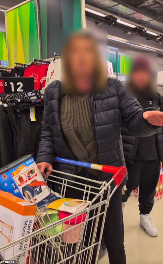 Quando um gerente do Kmart se aproximou da dupla, o comprador e o jovem apontaram para Mas, a mulher dizendo “tire-o da minha boca”.