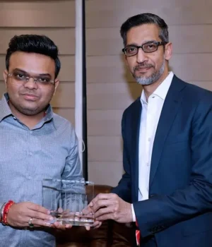 Nova Delhi: O presidente da ICC, Jai Shah, e o CEO do Google, Sundar Pichai, estiveram presentes na partida Super 8 da Copa do Mundo T20 Masculina da ICC entre Índia e África do Sul, no Estádio Narendra Modi, em Ahmedabad, no domingo.