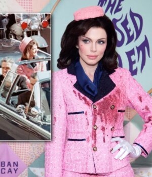 A atriz foi fotografada na festa de Halloween do Cursed Talisman em Nova York na quinta-feira, vestindo um terno de tweed rosa e um chapéu casamata combinando – mais ou menos como As roupas que Jackie usava famosamente O dia em que seu marido, o presidente John F. Kennedy, foi assassinado.
