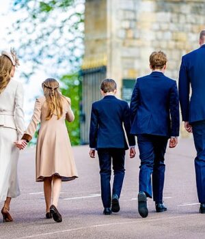 A realeza sênior conduziu anteriormente o Príncipe e a Princesa de Gales e seus filhos a pé do Castelo de Windsor, apesar da neblina – 5 de abril de 2026