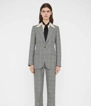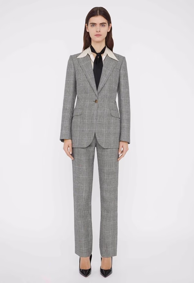 A aparência combina a jaqueta de peito único EARL com calças de estrate-Legg correspondentes. Corte uma verificação clássica do Prince no País de Gales, dá ao marido William um bom consentimento.