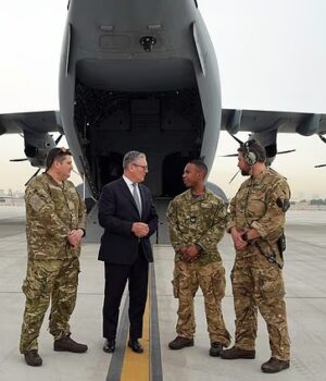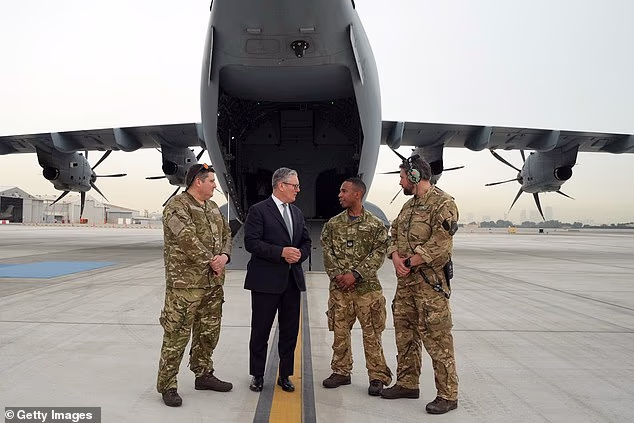 Sir Keir Starmer falou com a tripulação antes de embarcar em uma aeronave militar em Abu Dhabi na quinta-feira